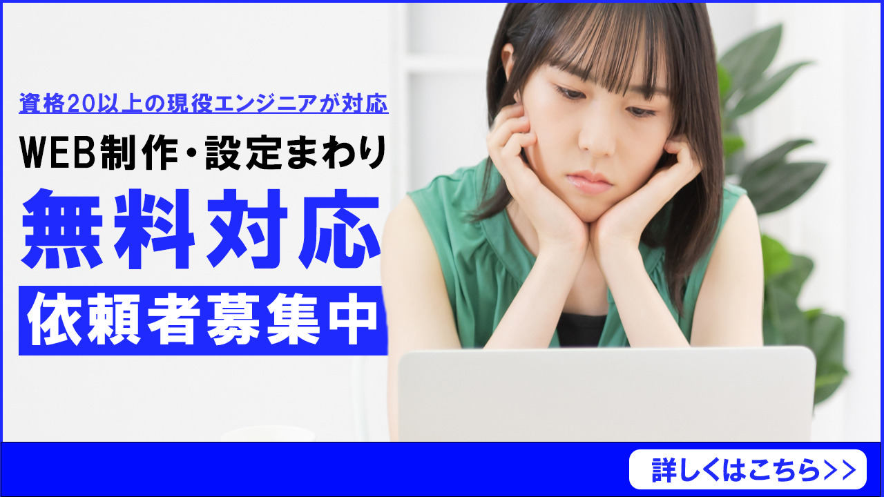 「無料WEBコーディング対応キャンペーン」はその名の通り、WEBサイトの制作・設定案件を無料で対応するキャンペーンです。ご利用はおひとり様1回限りとさせていただきます。